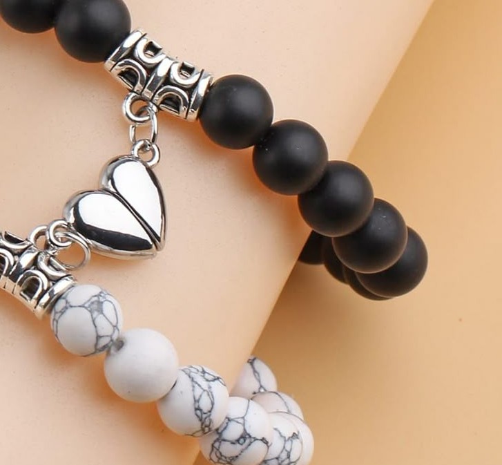 Design: Beaded Couple Bracelets with Magnetic Heart Charm.