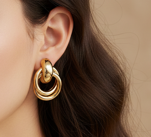 Our Golden Interlock Earrings are designed to bring a touch of luxury to your jewelry collection. Each earring features three polished gold rings that are beautifully intertwined, creating a thick, layered look that catches the light from every angle.