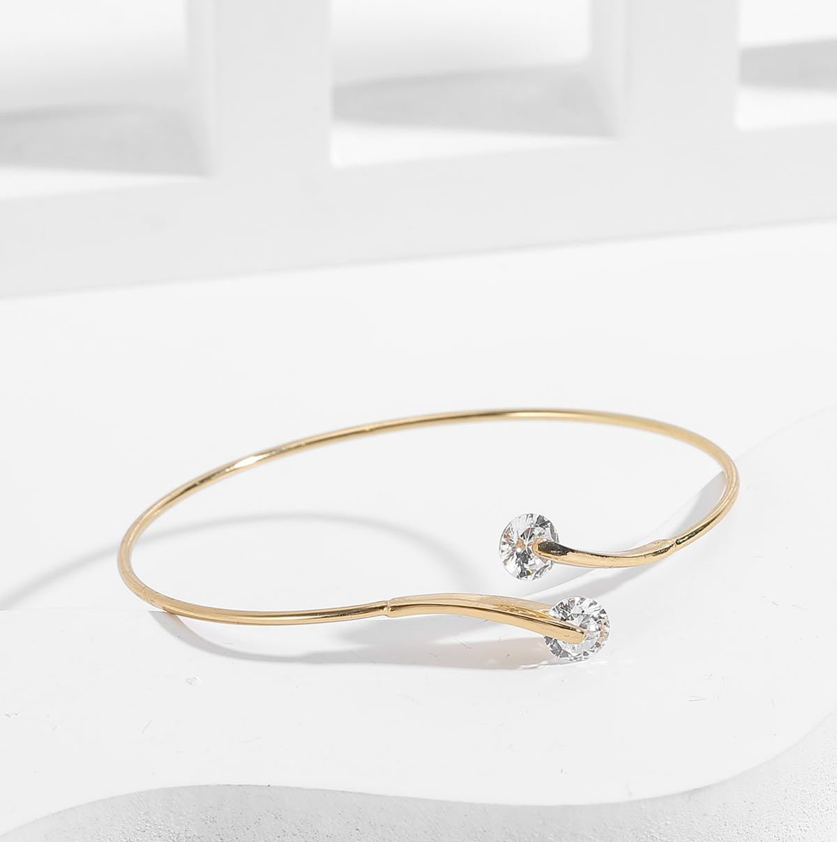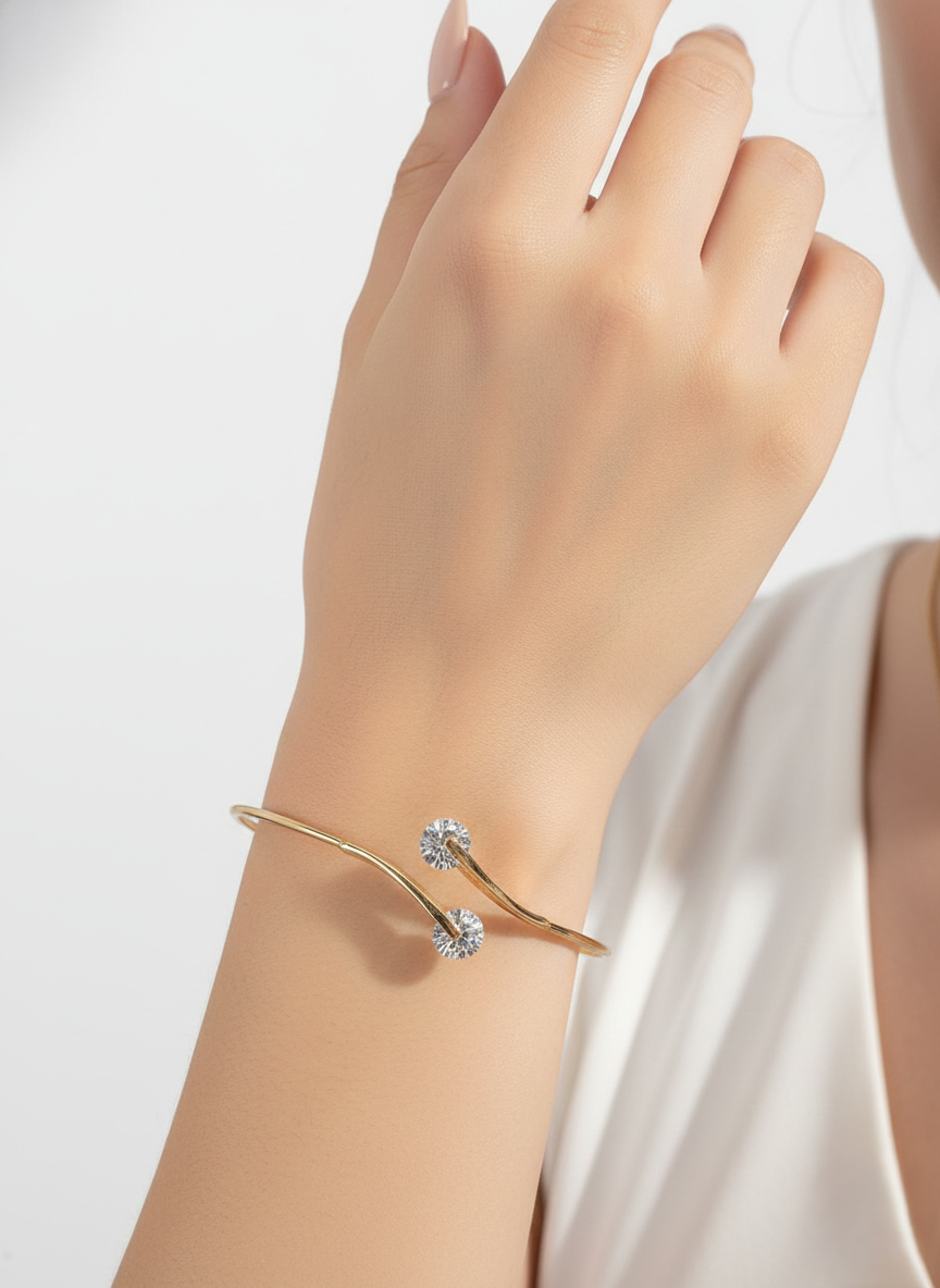 At each end sits a high-quality clear crystal that catches the light beautifully. Because it is an open cuff (Kada style), you can slightly adjust it to fit your wrist perfectly. It’s the kind of piece that looks just as good with an office blazer as it does with a party dress.