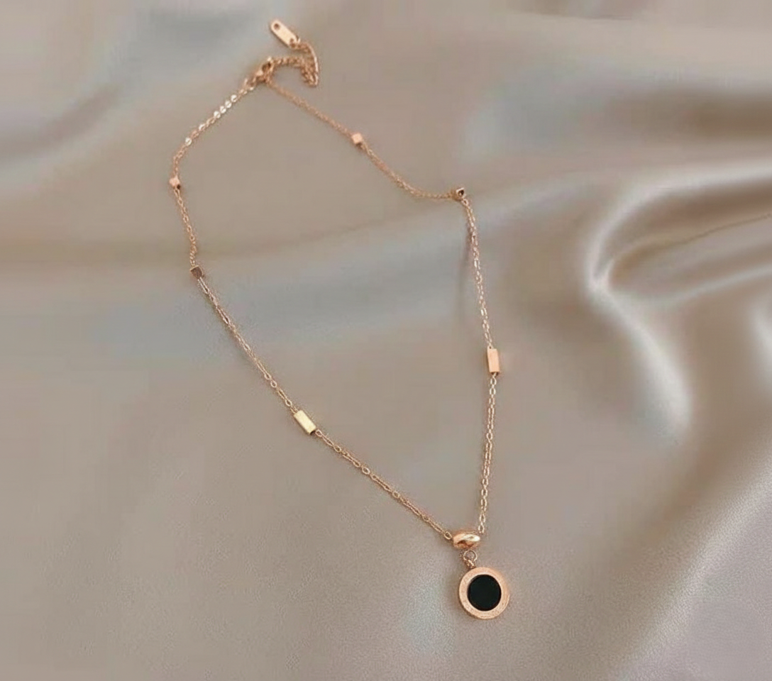 What makes this necklace stand out is its Chain instead of a plain wire, the chain is decorated with small, polished rose gold bars and cubes that catch the light from every angle. It is sophisticated enough for a formal dinner but simple enough to be your favorite daily accessory.